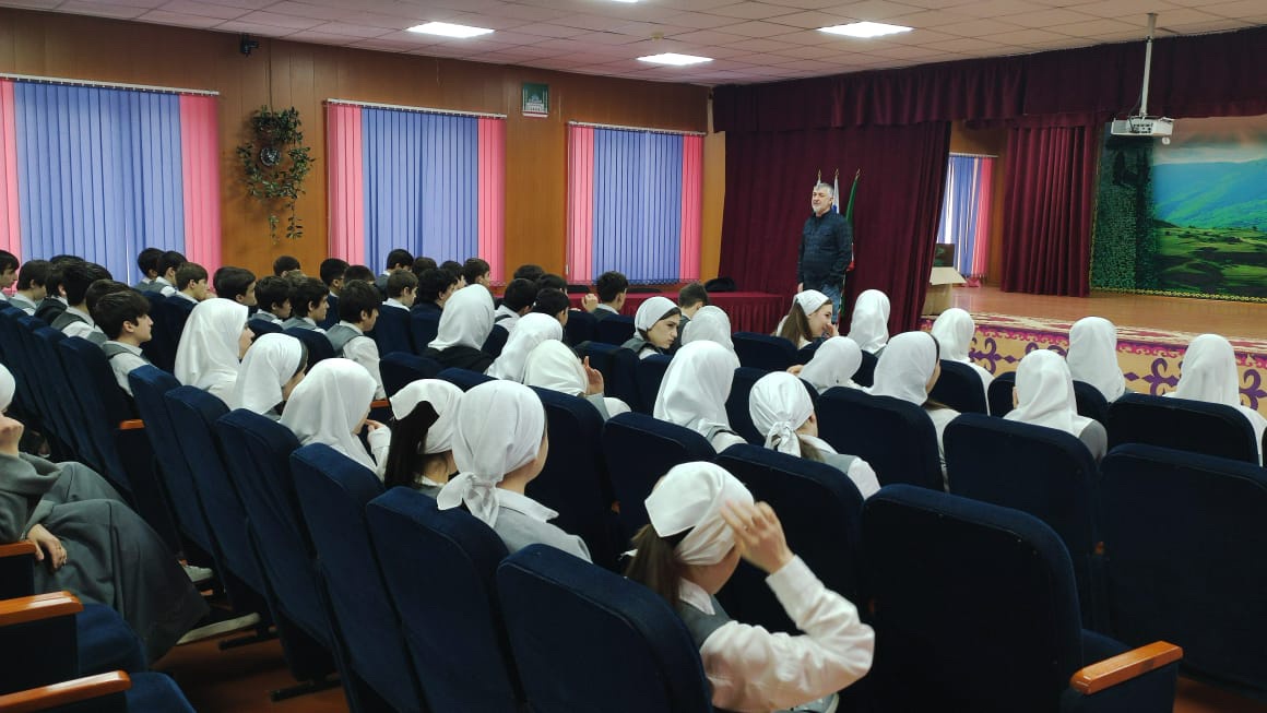 В рамках исполнения мероприятий программы по профилактике наркомании, алкогольной и табачной зависимости и пропаганде здорового образа жизни в МБОУ "СОШ 47" г. Грозного с Гайрахмановым Мовла Сатуевичем, начальником центра профилактики ГБУ РНД, ...