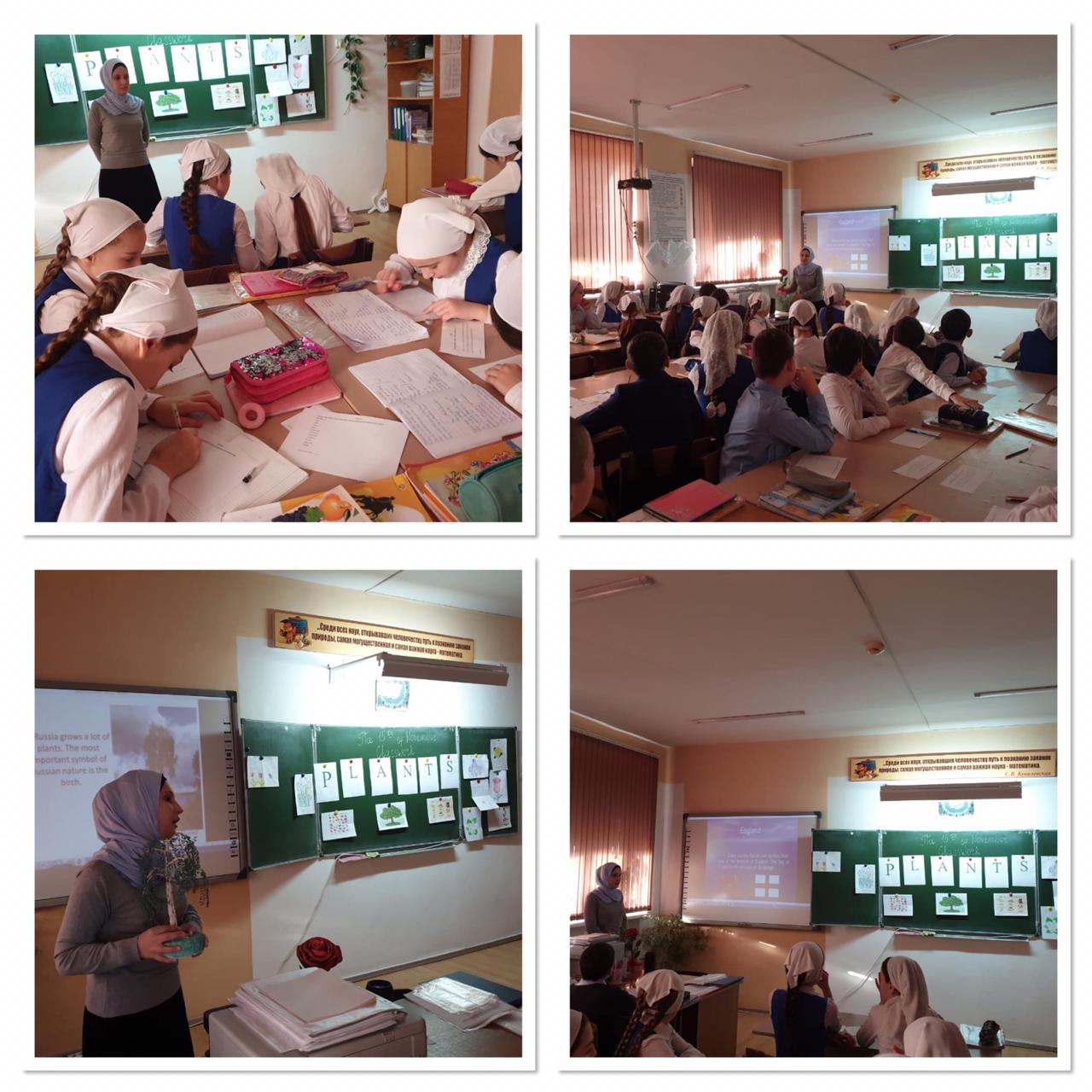 15.11.2019В соответствии с планом проведения метапредметной декады «В союзе с природой» 15.11.2019г. прошли открытые уроки.Тема урока в 5а классе, который провела учитель английского языка Чалаева Аминат Сулумбековна, – «Растения-символы Великобритании и России». Тему урока ученики узнали, выполнив задание, в котором по порядковому номеру нужно было угадать букву английского алфавита. Ученики выступили с сообщениями о растениях – символах России и Великобритании, посмотрели презентацию, выполненную в Microsoft Power Point, о цветах и их названиях. Учащиеся подготовили рисунки своих любимых цветов и сообщения о них, работали с деформированным текстом в парах и в группах.