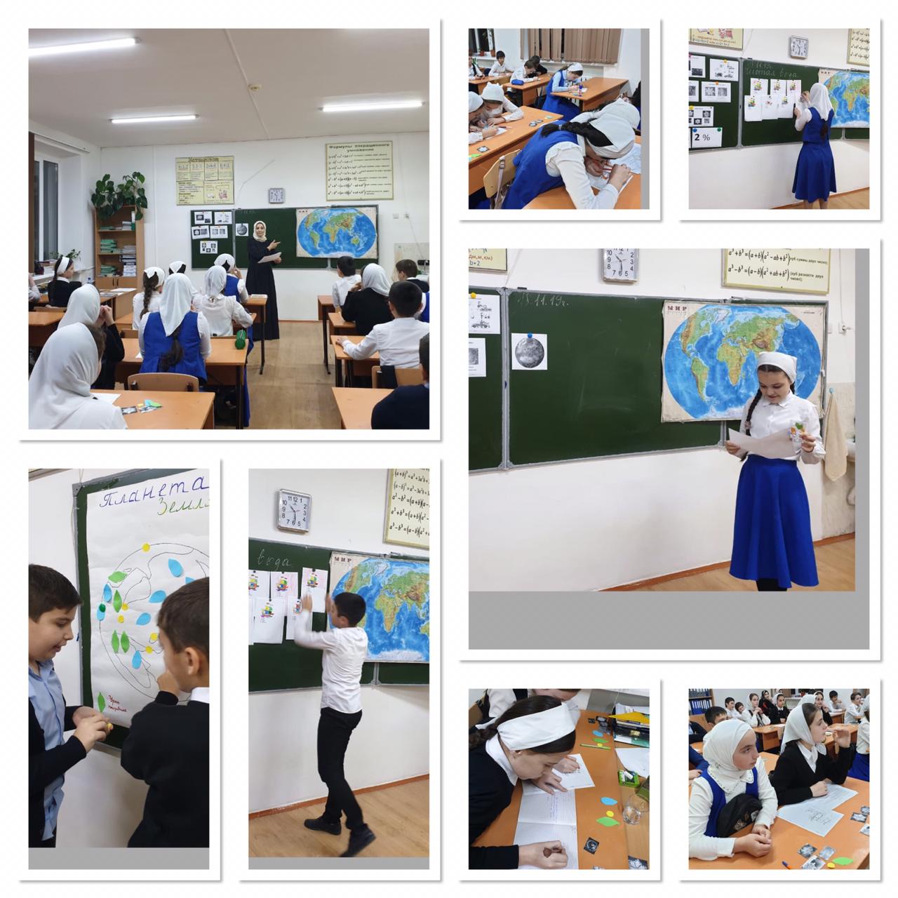 18.11.2019Хава Шариповна Акбулатова, учитель математики, на уроке экологического содержания в 7в классе совершила с учениками кругосветное путешествие в поисках «Чистой воды» на кораблях, которые приобрели свой цвет после выполненных математических действий. В течение своего путешествия ученики побывали в разных странах, брали пробы из разных всемирно известных источников, узнали разные способы очистки и фильтрации воды, вспомнили 3 агрегатных состояния воды. Работая в парах, ученики высчитали, что на планете только 2% пресной воды. В заключении учитель рассказала о «Святой» воде, о том, что вода источник жизни.