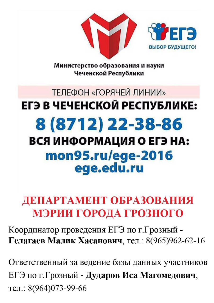 Новый номер телефона "горячей линии" ЕГЭ в Чеченской Республике: 8 (8712) 22-38-86