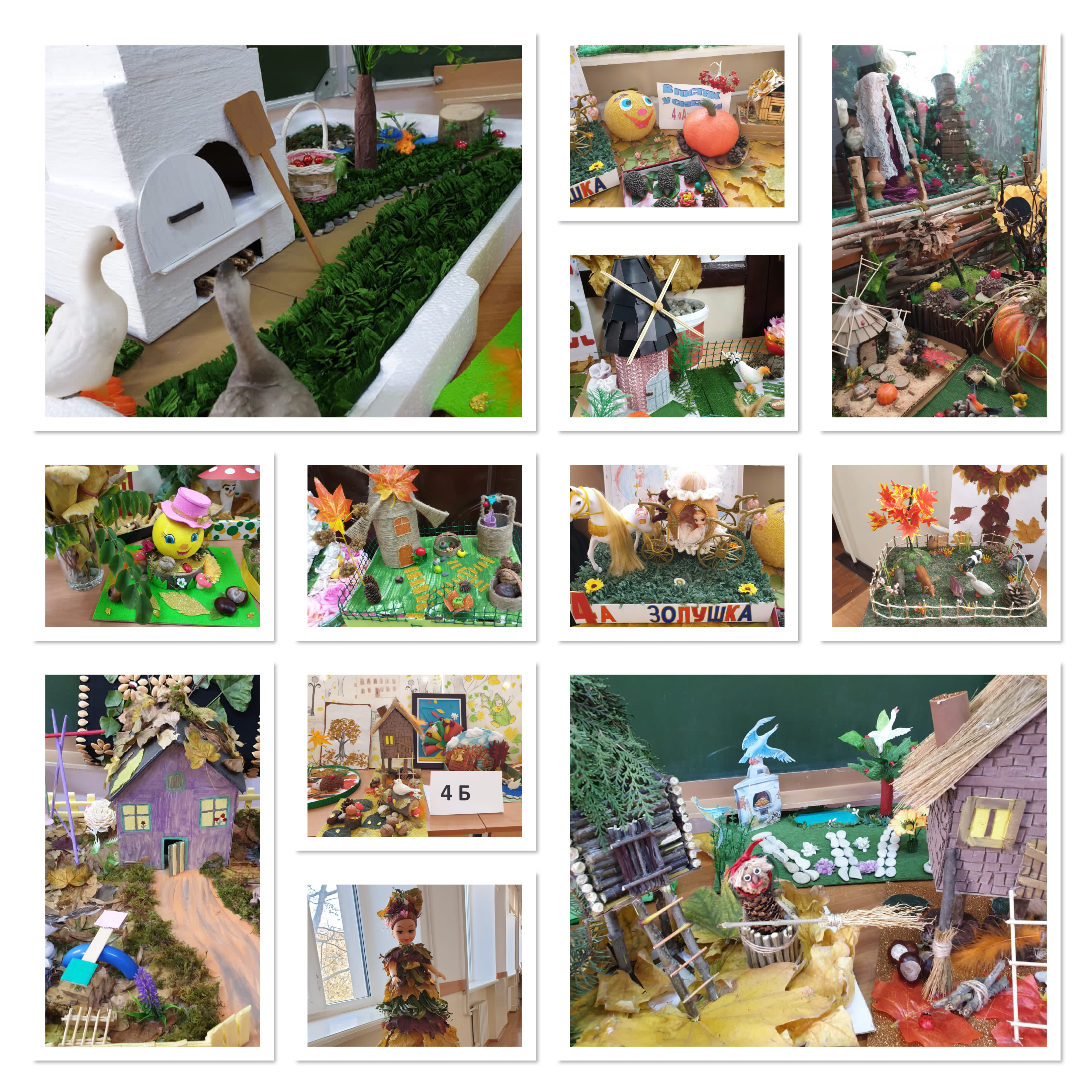 Природа осенью полна неповторимым разнообразием цветов и красок, что вдохновило учащихся начальной школы для создания ярких поделок на тему "В гостях у сказки".