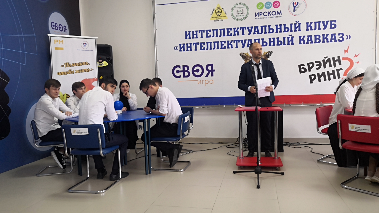 29.04.2022В рамках Федерального проекта «Успех каждого ребенка» национального проекта «Образования», направленного на создание и работу системы выявления, поддержки и развития способностей и талантов детей и молодежи, в рамках проекта фонда Президентских грантов «Я и этот мир» 28.04.2022г. команда старшеклассников «Freedom» МБОУ «СОШ №47» г. Грозного участвовала в финальном этапе игры шестого Чемпионата (школьная лига) Чеченской Республики по интеллектуальной игре «Брейн-Ринг» среди 8 - 11-х классов общеобразовательных организаций.