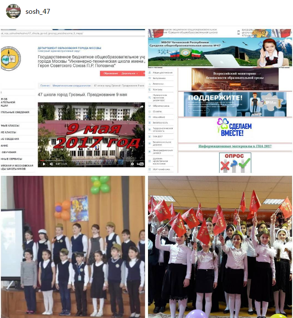 ГБОУ города Москвы «Инженерно-техническая школа имени дважды Героя Советского Союза П.Р. Поповича» предложила сотрудничество с МБОУ "СОШ N47" г. Грозного. Дружественные контакты начались с организации виртуальной выставки мероприятий, посвященных проведению Дня победы. Видеоролик мероприятий нашей школы «С Днем победы» демонстрировался в холле ГБОУ Инженерно-технической школы. Презентация проведения их мероприятий была показана в актовом зале нашей школы. 17 мая в ГБОУ города Москвы «Инженерно-техническая школа имени дважды Героя Советского Союза П.Р. Поповича» состоится городская конференция по физике, на которой будет представлено (в записи) выступление ученицы МБОУ «СОШ №47» Цициевой Макки на X студенческой конференции в ЧГПУ г. Грозного».