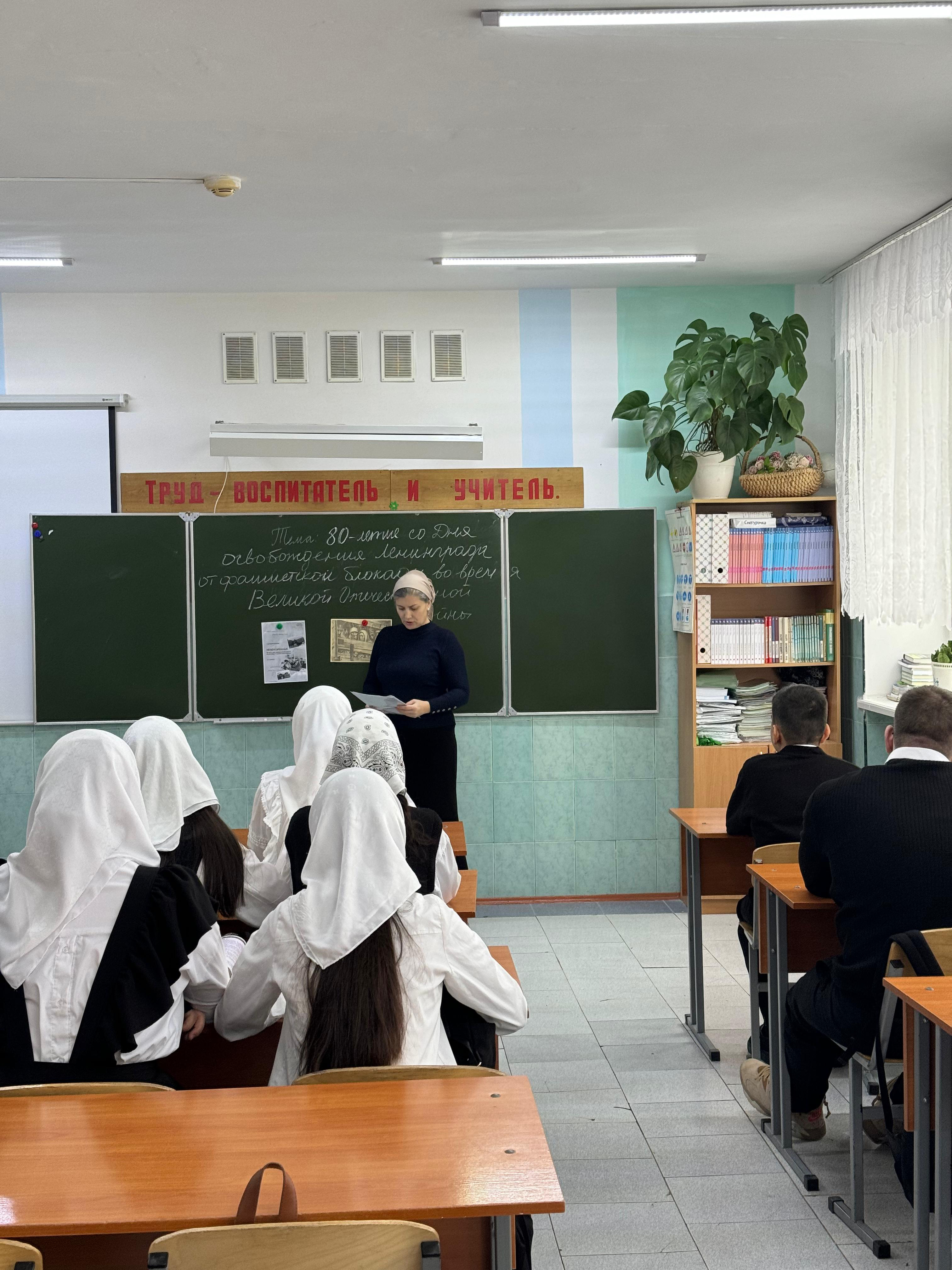 В МБОУ «СОШ 47» г. Грозного прошли еженедельные классные часы из цикла Разговоры о важном на тему: «Непокорённые. 80 лет со дня полного освобождения Ленинграда от фашистской блокады».