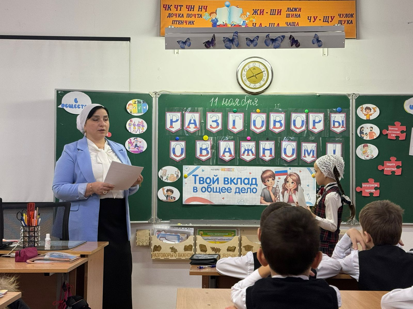 В МБОУ «СОШ 47» г. Грозного прошли еженедельные классные часы из цикла Разговоры о важном на тему: «ТВОЙ ВКЛАД В ОБЩЕЕ ДЕЛО».