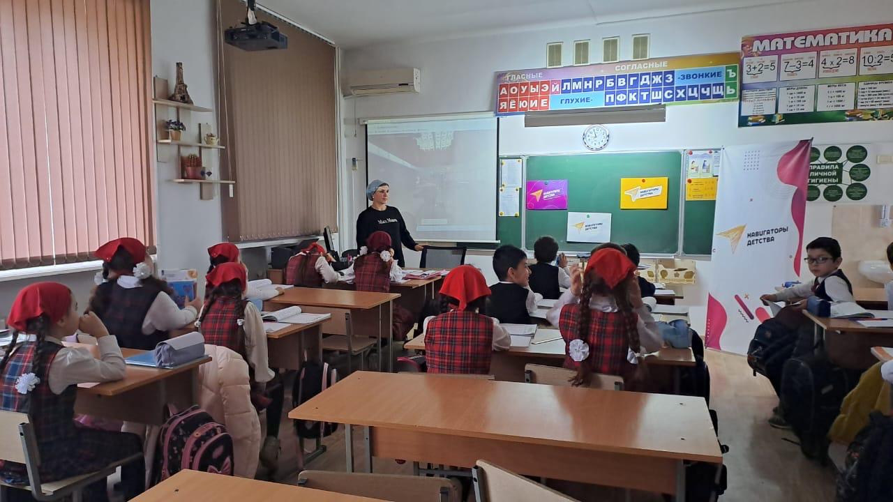 ✨ Сегодня, 31 января, в МБОУ "СОШ №47 г.Грозного советник директора по воспитанию Дутаева Л.Р. познакомила учащихся 3-6 классов с ключевыми событиями Великой Отечественной войны.