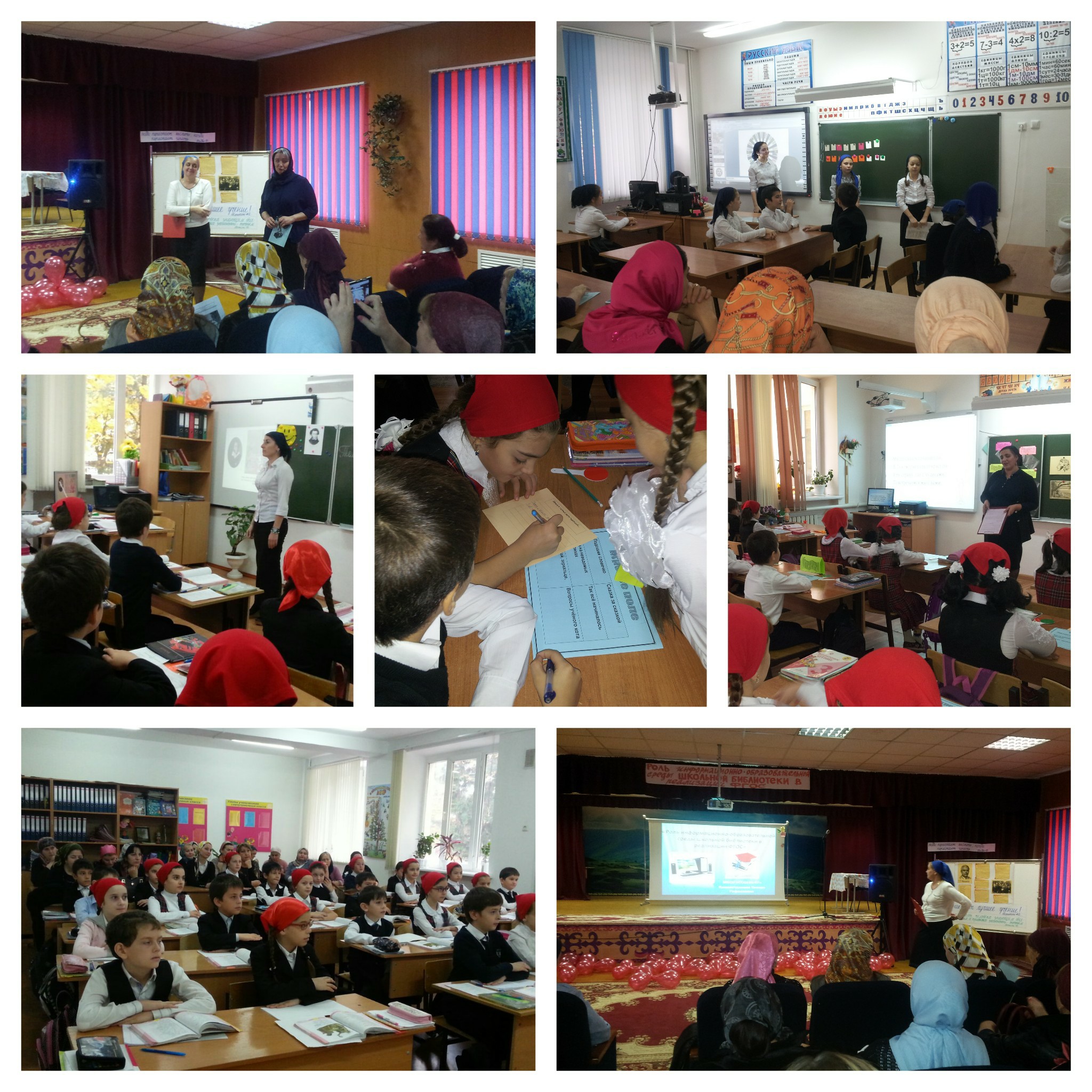 Сегодня в школе прошел городской семинар «Роль информационно-образовательной среды школьной библиотеки в реализации ФГОС». После приветственного слова директора Керимовой Хейды Воважевны, с докладом выступила заведующая библиотекой Камалетдинова Тамара Рафаэловна. Игру «Земля - наш общий дом» провела в 5 классе учитель биологии Эльмурзаева Э.Р., а игру - викторину по произведениям А.С. Пушкина в 3 классе - учитель Цонаева С.С. Урок литературного чтения «Добро и зло в «Сказке о мертвой царевне и семи богатырях» А.С. Пушкина» провела учитель Хамадова Л.А.