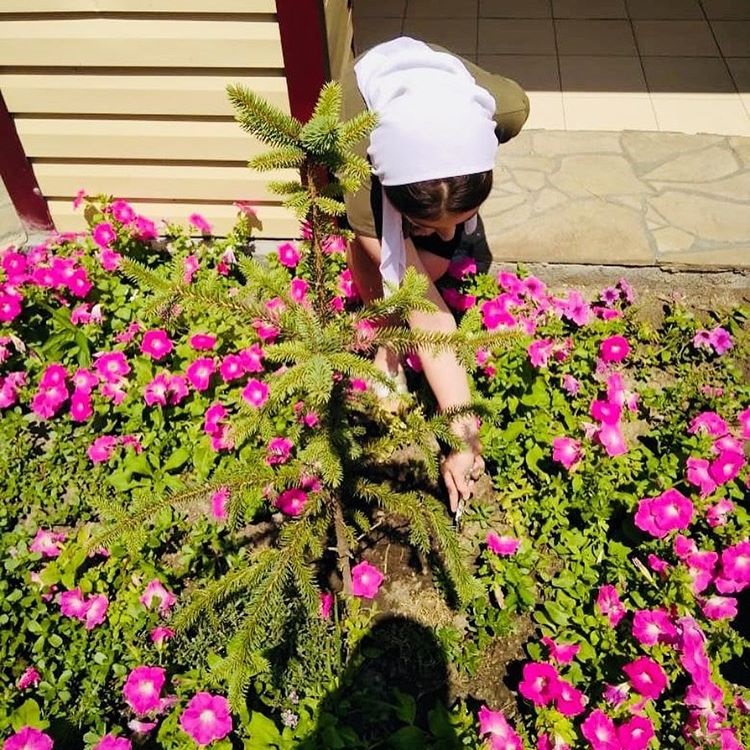 Производственная бригада продолжает трудится на школьных клумбах.